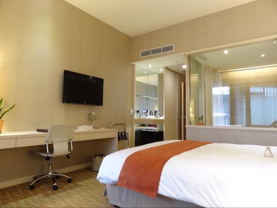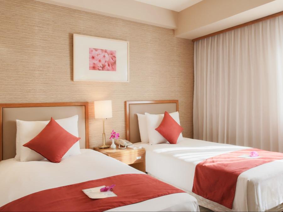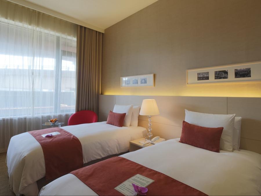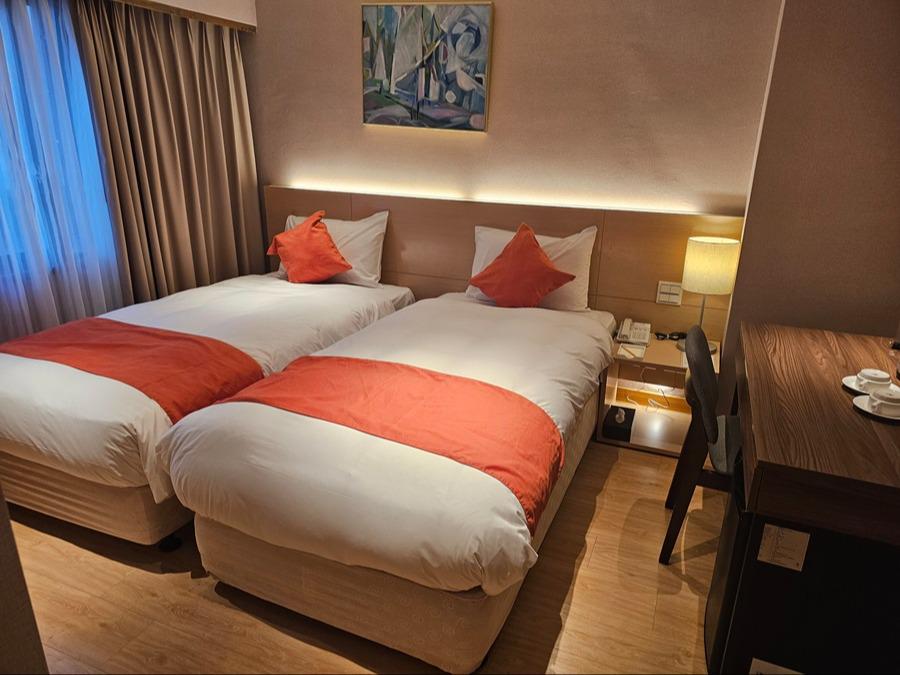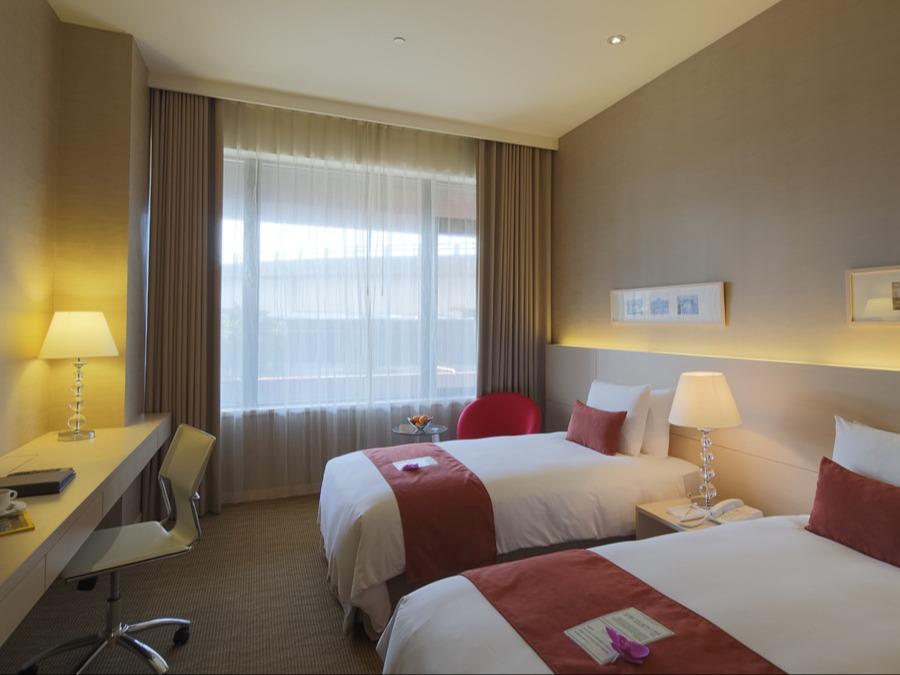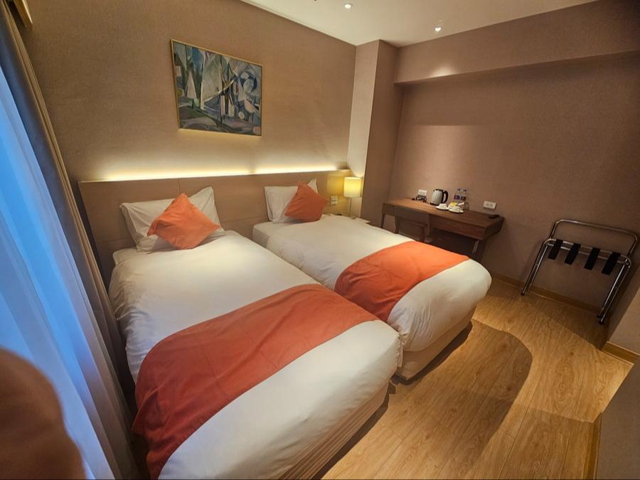 部分(兩小床)客房可遠眺淡水河岸風光,白日可賞天光流轉,夜晚則可靜觀城市燈影,讓旅程多一份靜謐與浪漫。